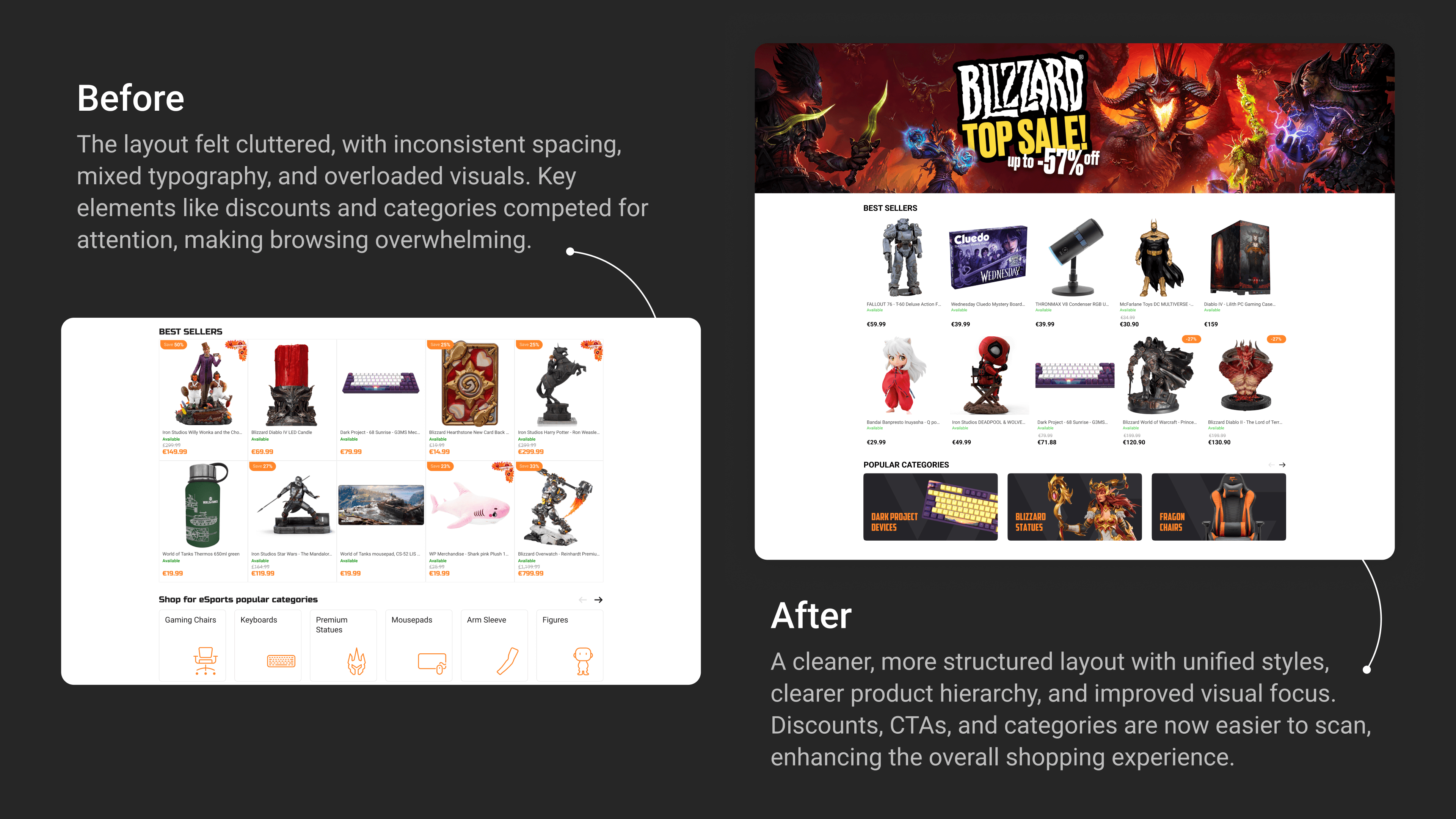 I led the redesign from initial research to final delivery. Using product analytics, I explored how users interacted with the site, identified UX pain points, and suggested improvements. I redesigned key pages — including the homepage, product listings, cart, and checkout — with a focus on usability and conversion. To support consistency and scalability, I also built a unified UI system and responsive layout templates.
